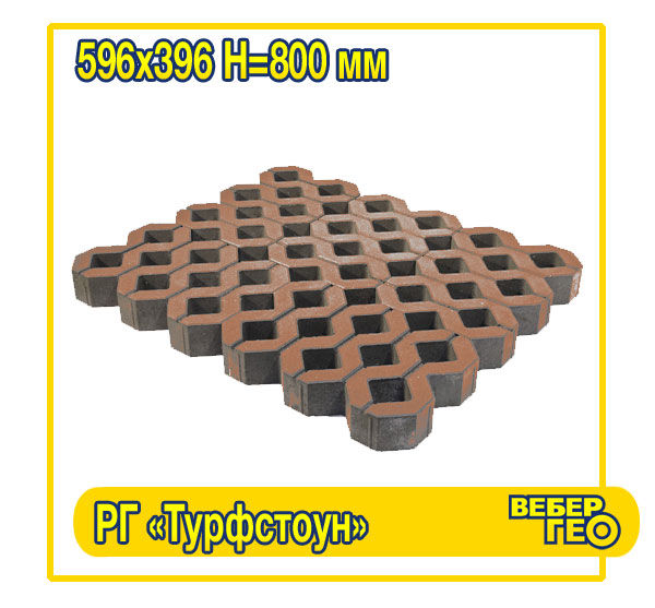 РГ «Турфстоун» имеет те же показатели по прочности и истираемости, что и обычная тротуарная плитка, низкий процент водопоглощения (не более 6%) и способность переносить до 200 циклов замерзания/оттаивания.