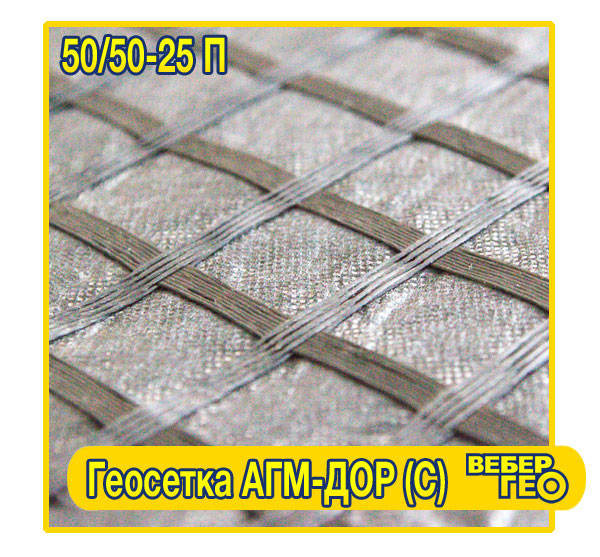 Геосетка АГМ-Дор (С) 50/50-25 П (25х25; 4х100; 50 кн; стекловолокно, с подл)