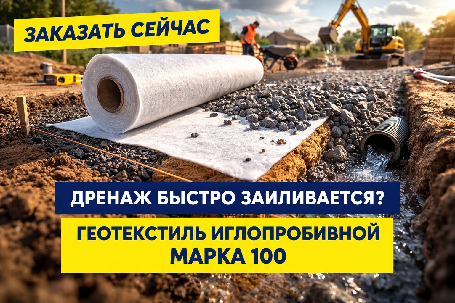Геотекстиль нетканый 100 г/м2, рулон (6м*100п.м.)