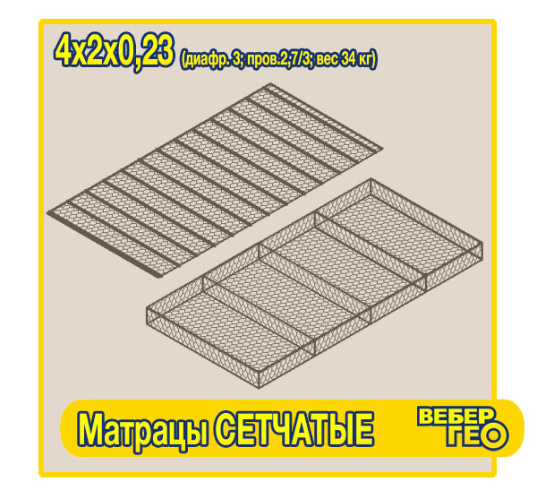 Матрацы сетчатые 4х2х0,23 (диафр. 3; пров.2,7/3; вес 34 кг)